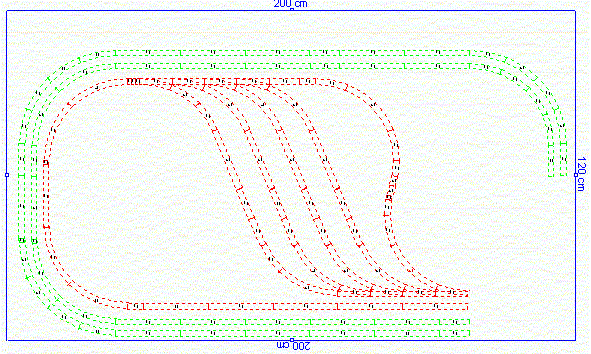 Geplant ist eine Anlage, die es erlaubt, auf der zweigleisigen Hauptbahn einen automatischen Zugverkehr durchzuführen. Das natürlich mit Polymatik und Blocksteuerung. Die Nebenbahn soll es dem Bediener ermöglichen, Rangier- und Fahrbetrieb durchzuführen. Eine übergabe von Zügen zwischen Haupt- und Nebenbahn soll möglich sein. Die Neigung der unterirdischen Steigungen beträgt zwischen 1,69% und 2,5%. Die Steigung der Nebenbahn beträgt 2,59%. An Gleisradien überwiegen aufgrund der kleinen zur Verfügung stehenden Fläche 286mm und 330mm. Die damit verbundene Einschränkung des Fuhrparks nehme ich in Kauf.